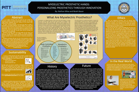 This project was completed for my the Freshman Conference at the University of Pittsburgh. This project was done in teams of two, my partner and I did our project on the sustainability, technology, and future of myoelectric prosthetic hands. The primary purpose of this project was to challenge us with researching and understanding a specific technology to write a research paper and present our topic at the conference. The paper, poster and presentation are attached bellow.